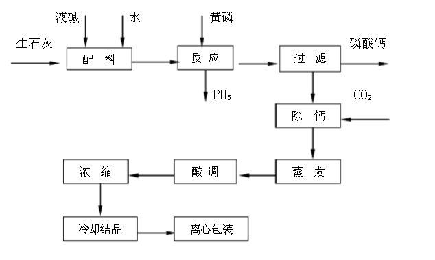 次磷酸在經(jīng)過一系列的過濾,蒸發(fā)、去除雜質(zhì)然后經(jīng)過和黃玲、石灰等物在水中合成反應(yīng)的時候可以形成次磷酸鈉。它的作用是非常有效的,因為在次磷酸鈉形成的時候可以有效的幫助廠家進(jìn)行使用。下面是次磷酸種次磷酸鈉的生產(chǎn)工藝流程圖。